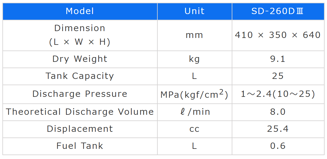 Specifications knapsack type power sprayersfeaturesOpposed double plunger pump with less pulsation and vibration. 25 liter chemical tank.