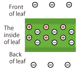 In the usual case, the positive electric charge and the negative charge in a plant are distributed uniformly each. When the negative charge particles approach, the positive charge moves to the surface and the positive charge and the negative charge pull against each other.