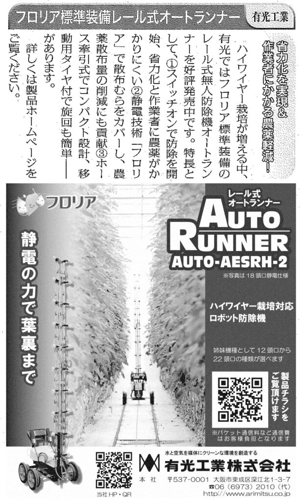ハイワイヤー栽培が増える中、有光ではフロリア標準装備の