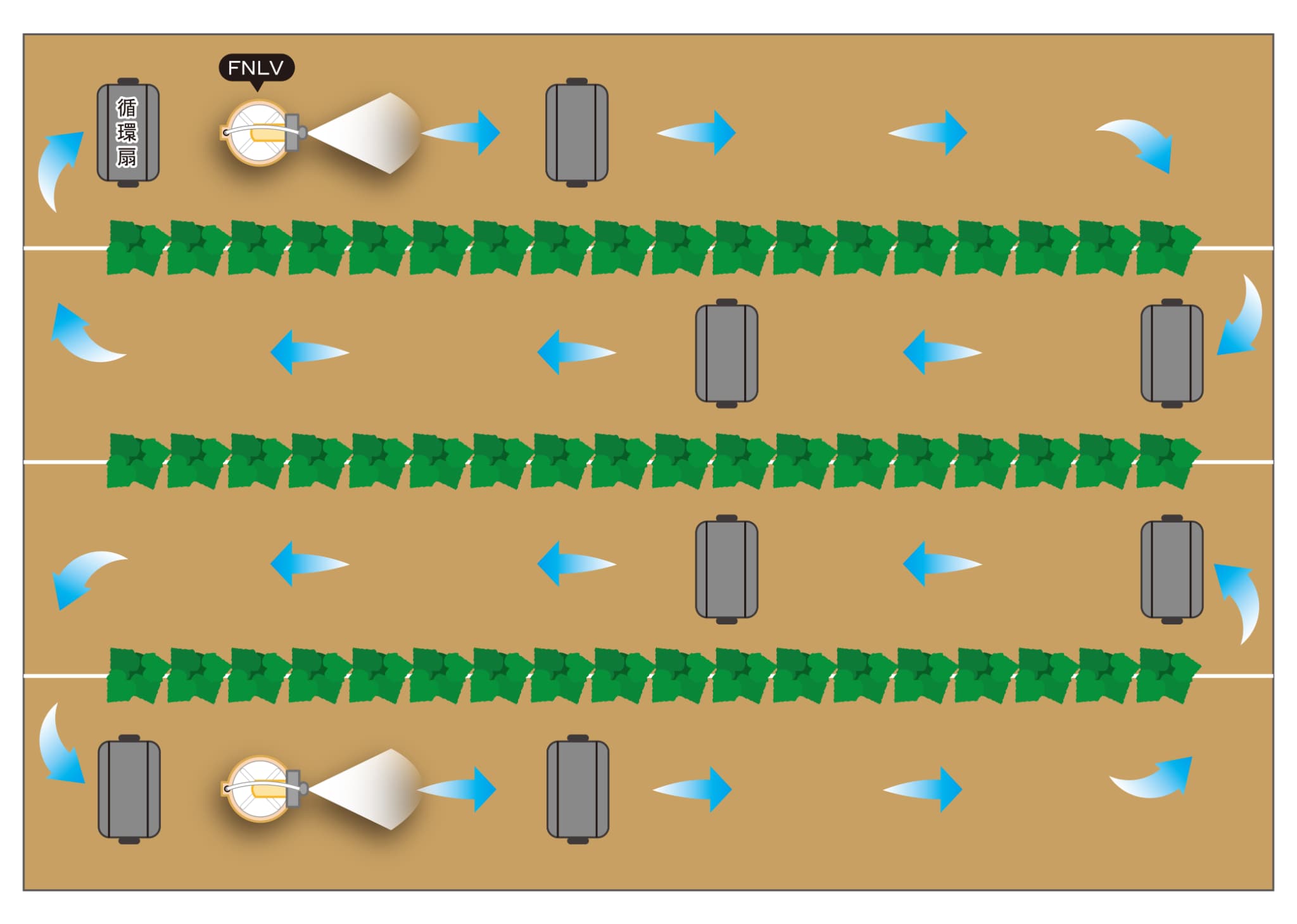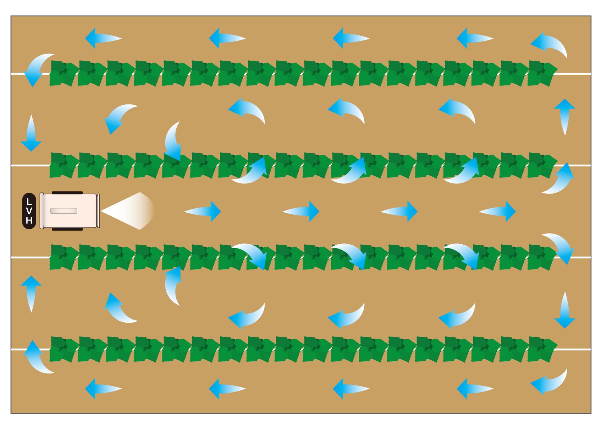 超微粒子なので作物が汚れにくくハウス内全体に散布でき