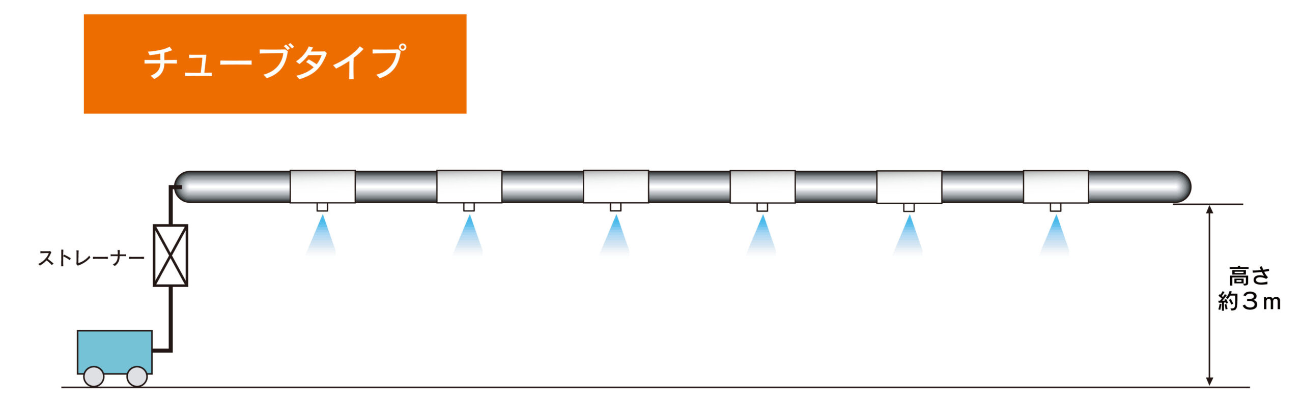 水道水でミクロのミストを散布させる細霧システム 環境にも体にも優しく周囲の温度を下げます 操作も簡単でコンパクト設計。クーラーの設置が難しい 屋外での熱中症対策や、工場内の防塵などにも役立ちます