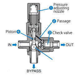 従来の調圧弁に比べて、コンパクトにまとめられているので、小型軽量です。 - 構造簡単