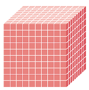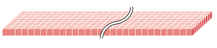 この立方体の縦、横、高さをそれぞれ10分割します。一辺0.1mmの立方体に分割し並べる。